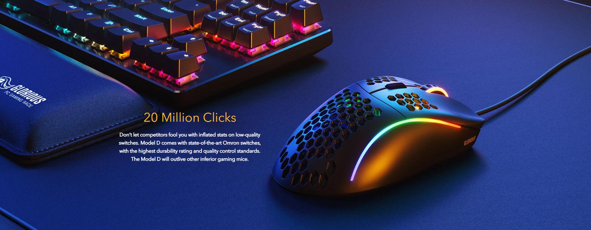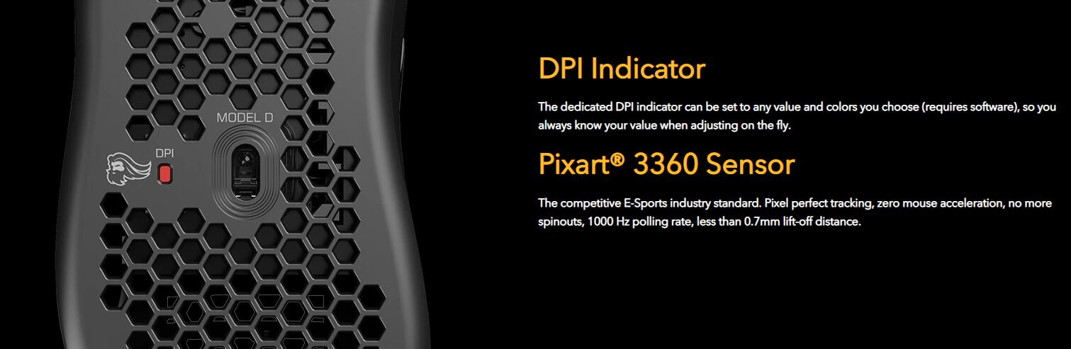 Model D’s HoneyComb Shell is the key to achieving a feather-light weight while maintaining its ultra-durable strength. You’ll barely feel the holes during gameplay, but they provide ventilation to keep your palms cool & fresh. Cleaning the Model D is easy, just use any air canister to keep your mouse good as new.