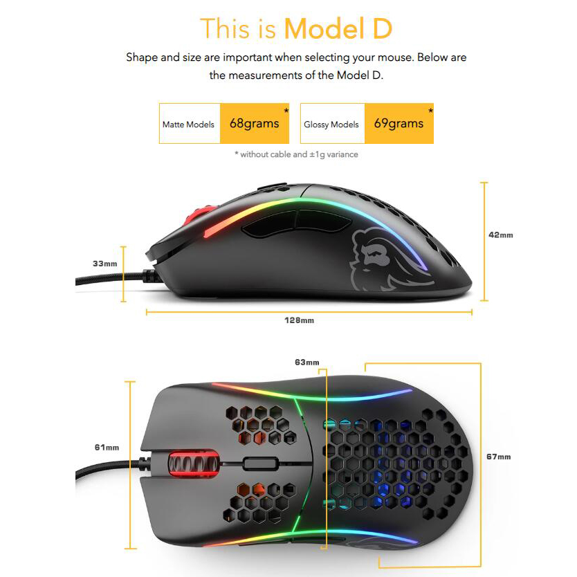 This is Model D, the most comfortable lightweight ergonomic RGB gaming mouse