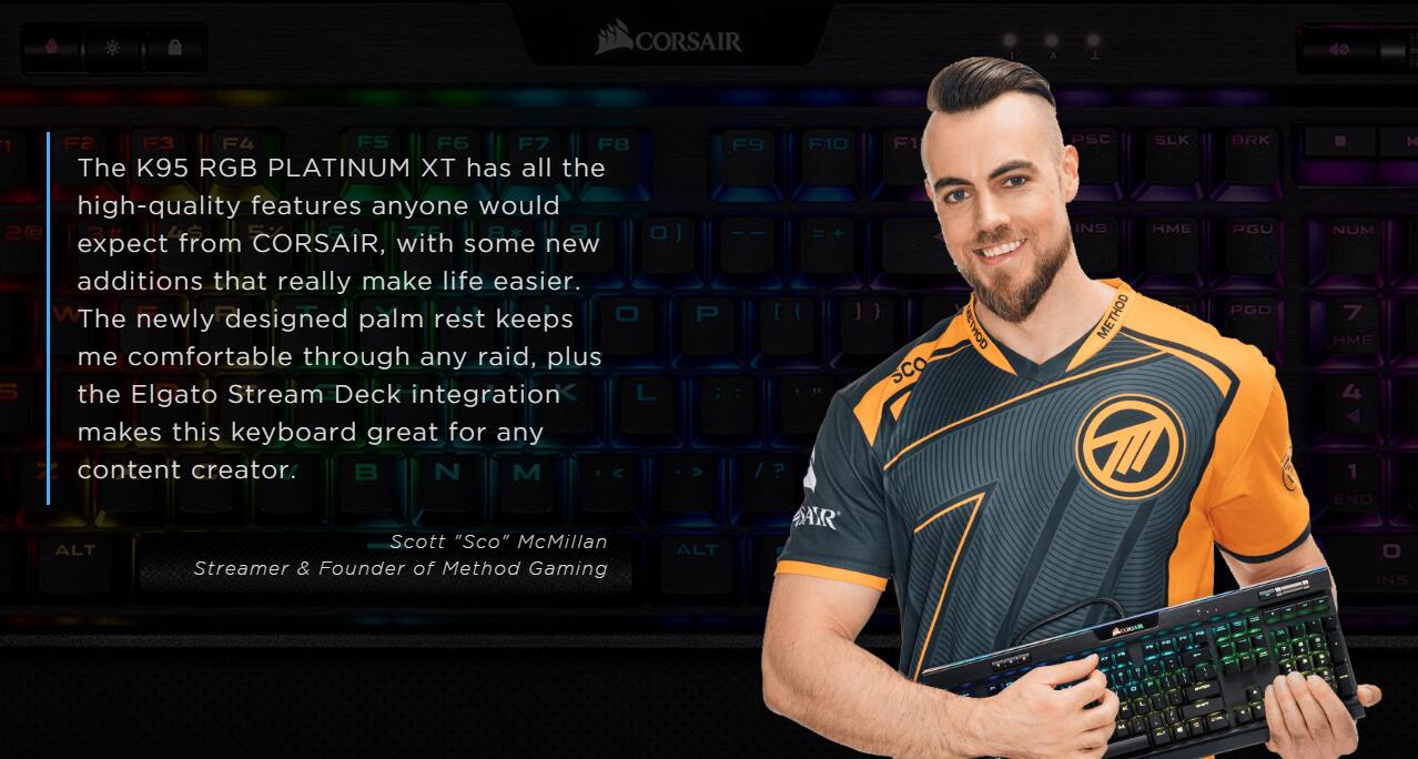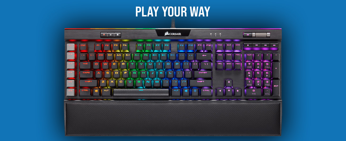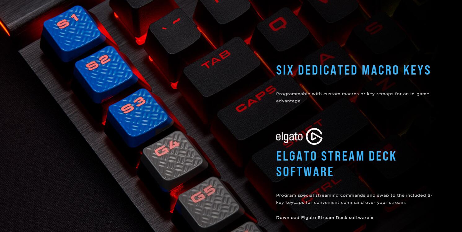 The CORSAIR K95 RGB PLATINUM XT Mechanical Gaming Keyboard immerses your desktop in dynamic per-key RGB backlighting, equipped with a double-shot PBT keycap set and six dedicated macro keys with Elgato Stream Deck software integration.