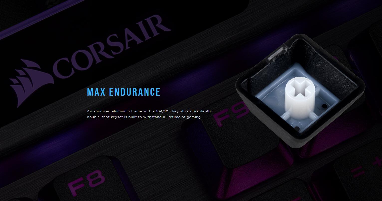 CHERRY MX SPEED RGB mechanical keyswitches provide ultra-fast 1. 2mm actuation and proven reliability with 100 million keystrokes