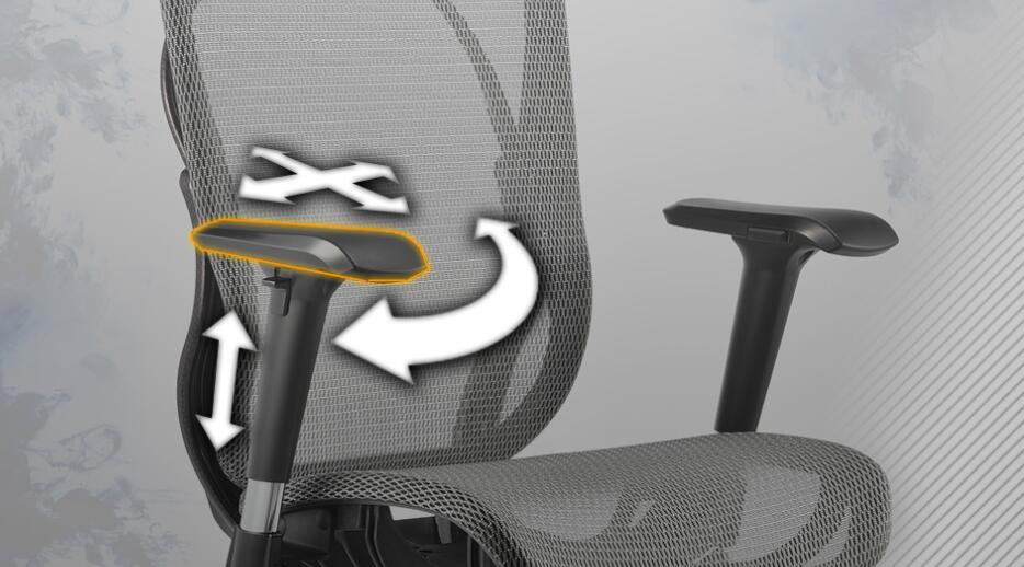 進一步升級的先進4D超大面積扶手,帶來比一般高規電競椅更強悍的鎖定功能,在您按下調整按鈕前,扶手均會維持在您調節的位置。扶手提供前後 / 左右 / 上下 / 水平旋轉功能,您可隨心所欲調整扶手至最習慣的擺放位置。