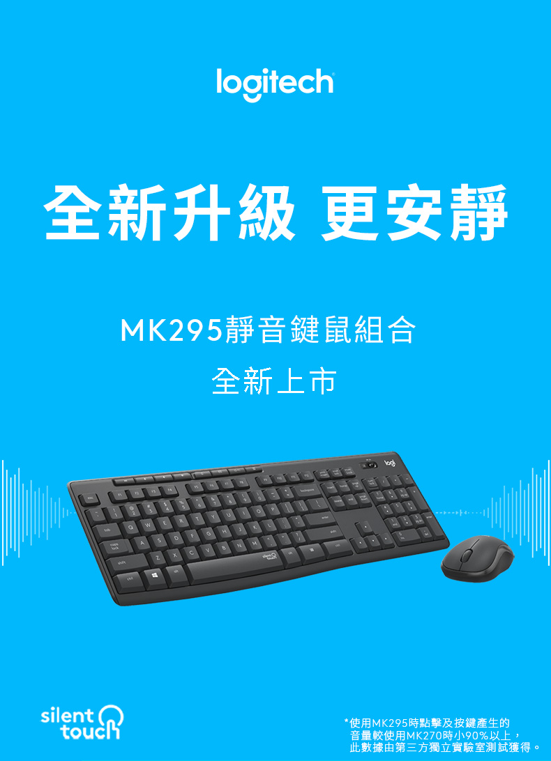 Logitech MK295 SILENT 無線鍵盤滑鼠組合(英文版 - 白色)