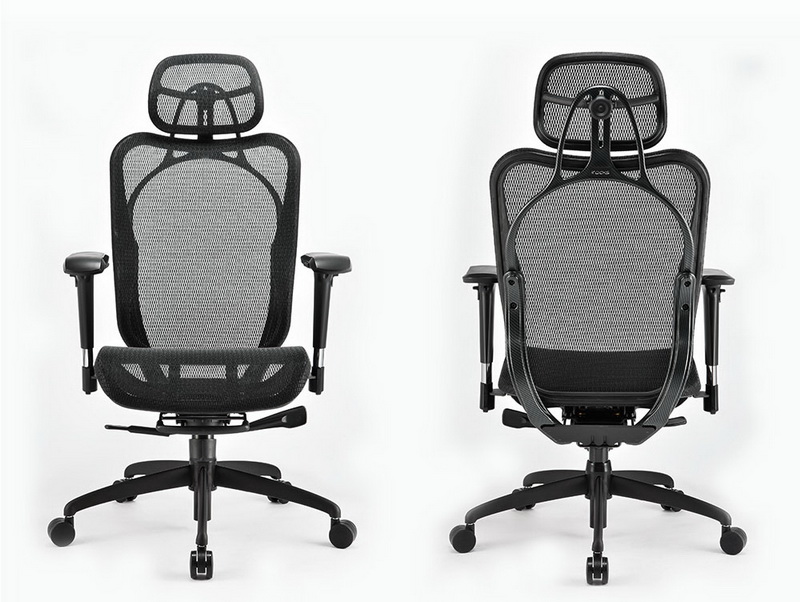 -  人體工學椅背,兼具後傾壓力調整鈕及固定功能
