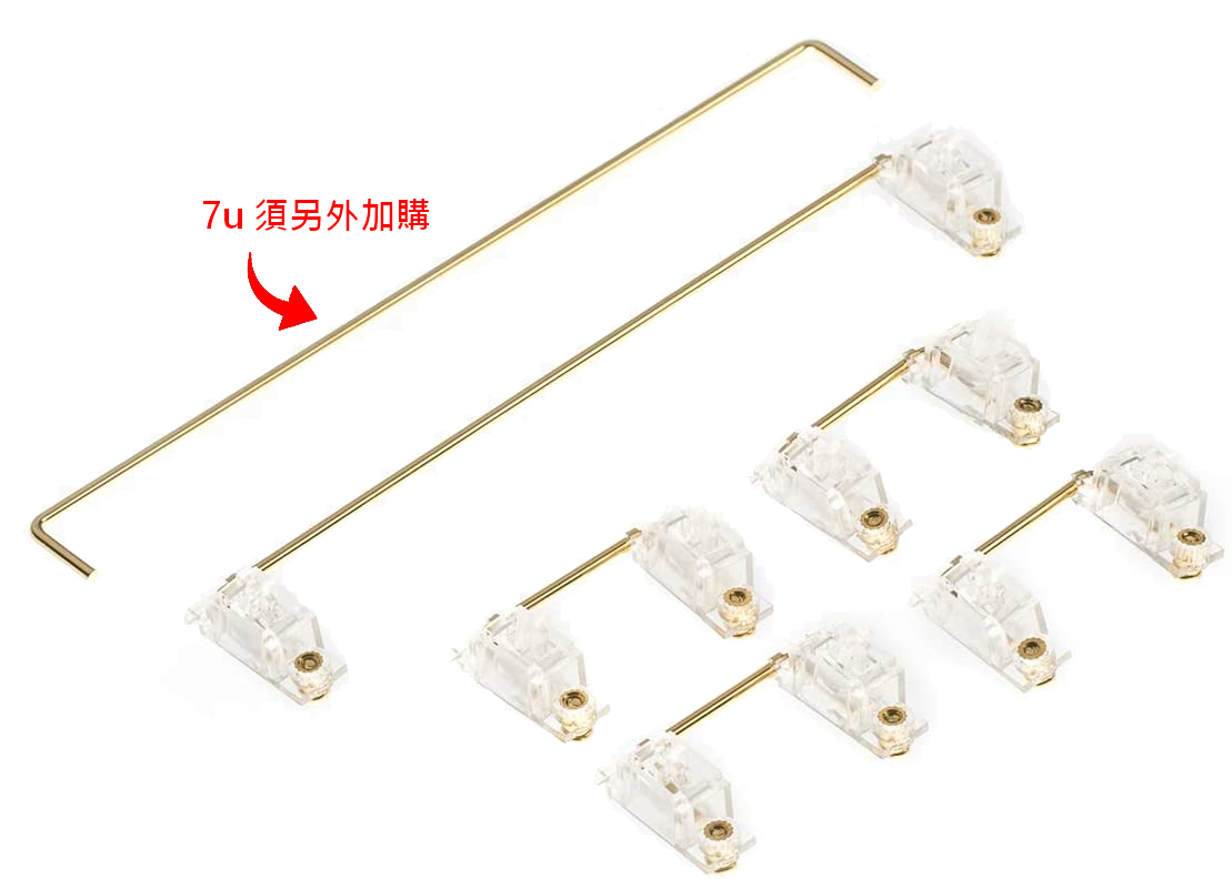 如需組裝7U空格鍵,需要加購單獨的7U衛星軸。