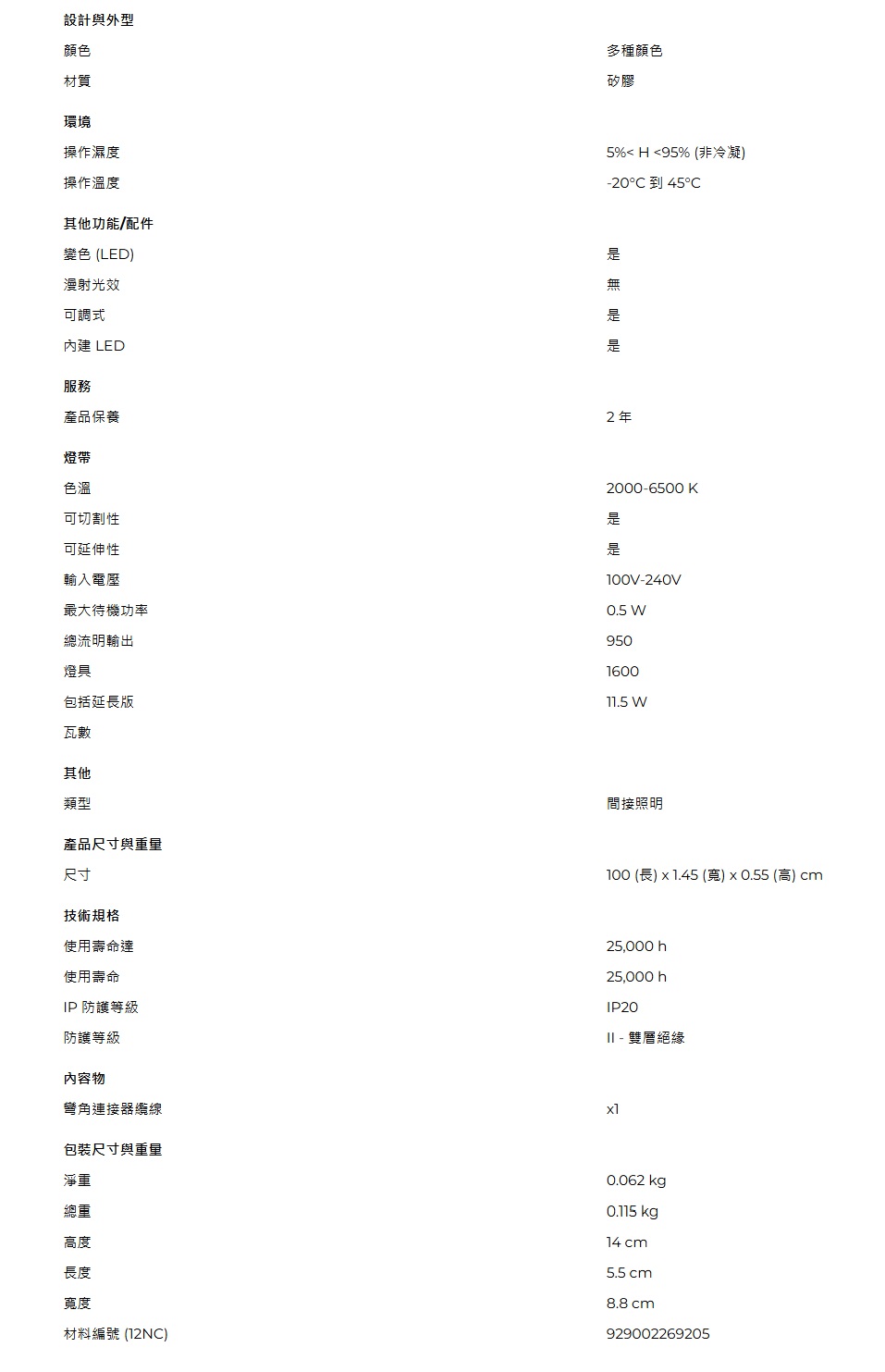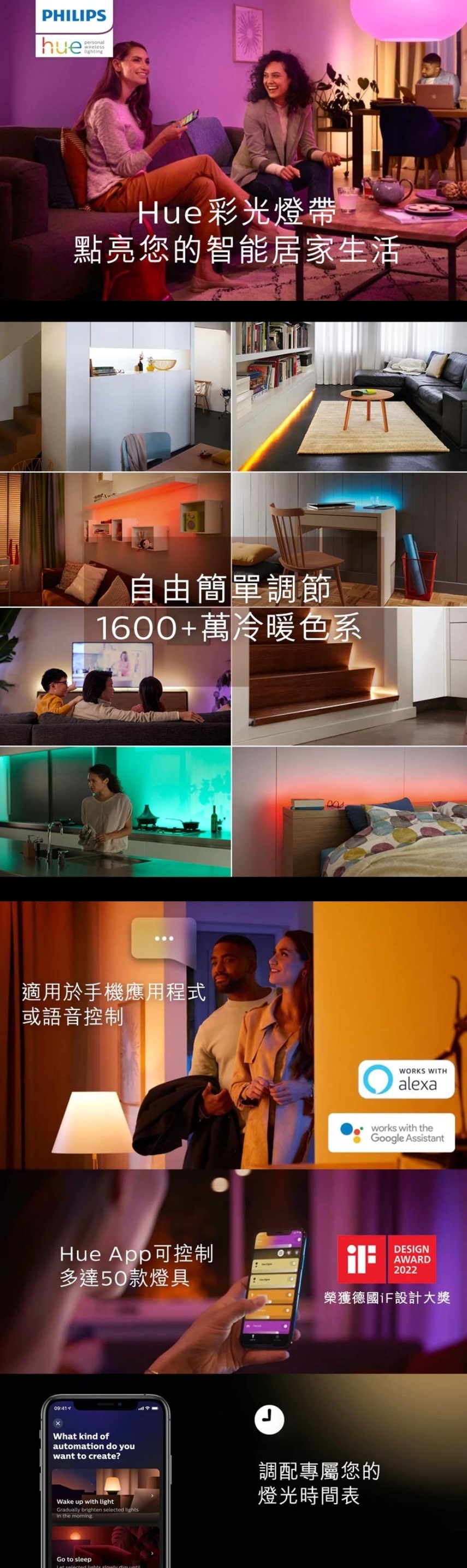 *此產品為延長燈帶沒有火牛,必需搭配Philips 飛利浦 Hue 彩光+白光 Ambiance LightStrip Plus V4 2米基本版智能燈帶(支援藍牙) 方可使用。