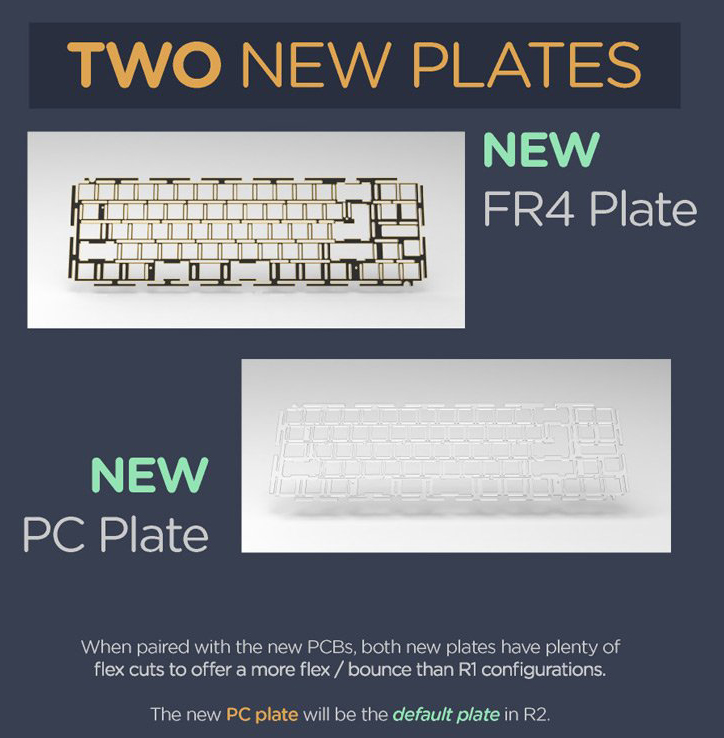 有線默認PCB(Bodo 05)在R2進行了調整,採用1.2mmPCB,使用flex cut的方式調整軟硬程度,同時和R1一樣是支持即插即用VIA,多種佈局的熱插拔PCB!這是一項非常獨特的功能,可讓您隨時隨地使用拆分L Shift,拆分R Shift,拆分Backspace,階梯式大寫鎖定和ISO Enter中的任何一個或全部,無需焊接!