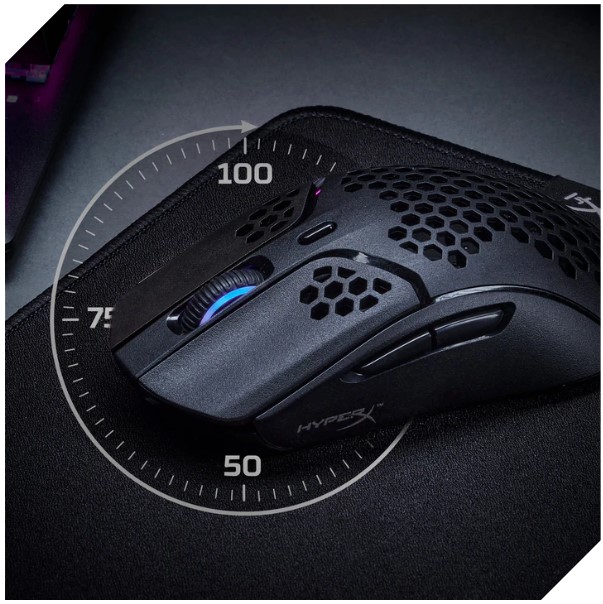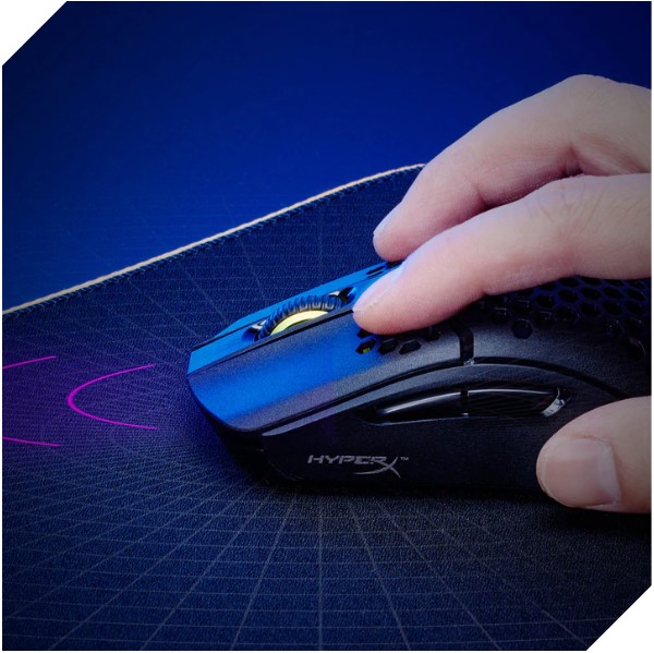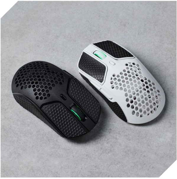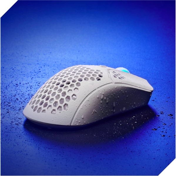 The wireless Pulsefire Haste is a mesh mouse with cutouts which make it lighter than a solid shell mouse, without sacrificing durability. The shell also allows for better airflow and ventilation.