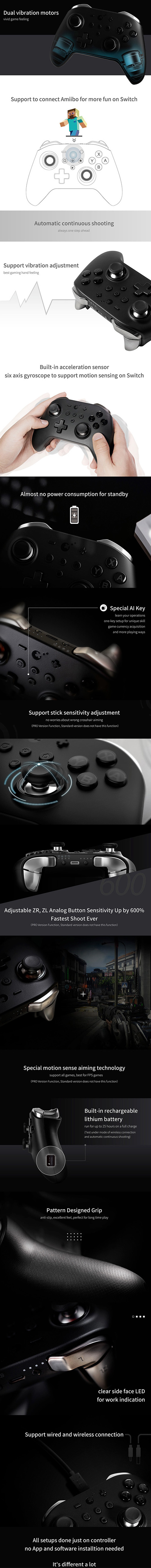 - 內建六軸陀螺儀,支援NS動作感應操作。