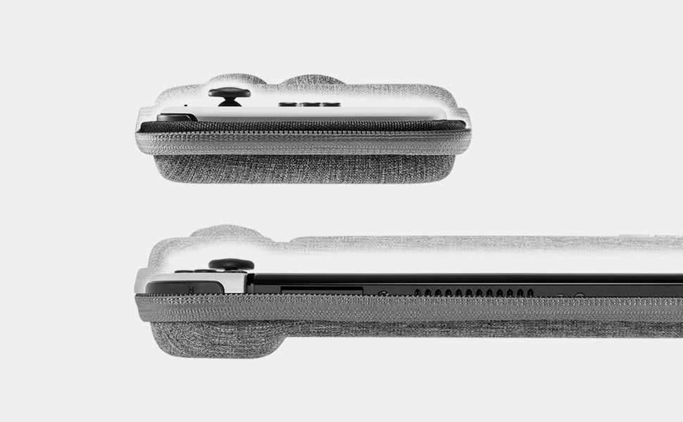 - Even with your NS OLED Model inside the case, the thickness is only 3cm, making it very easy and convenient to carry around. Infusing simplicity and style into your gaming experience with our one-of-a-kind case designed to protect your device seamlessly.