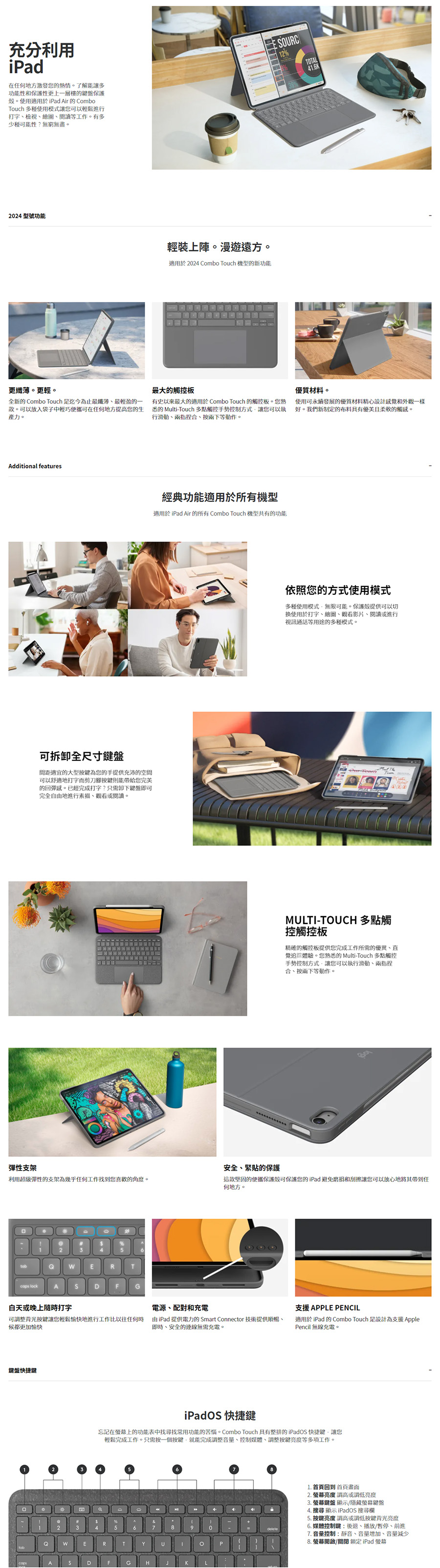 全新的 Combo Touch 是迄今為止最纖薄、最輕盈的一款。可以放入袋子中輕巧便攜可在任何地方提高您的生產力。