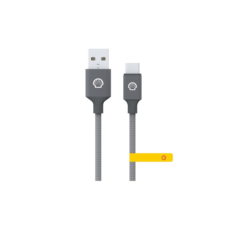 Shell 蜆殼 CB-AC023 USB A to USB C 灰銀尼龍編織充電線(1米)