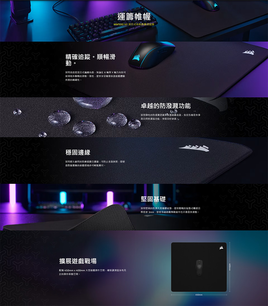 Corsair MM500 v2 混合式布料遊戲滑鼠墊