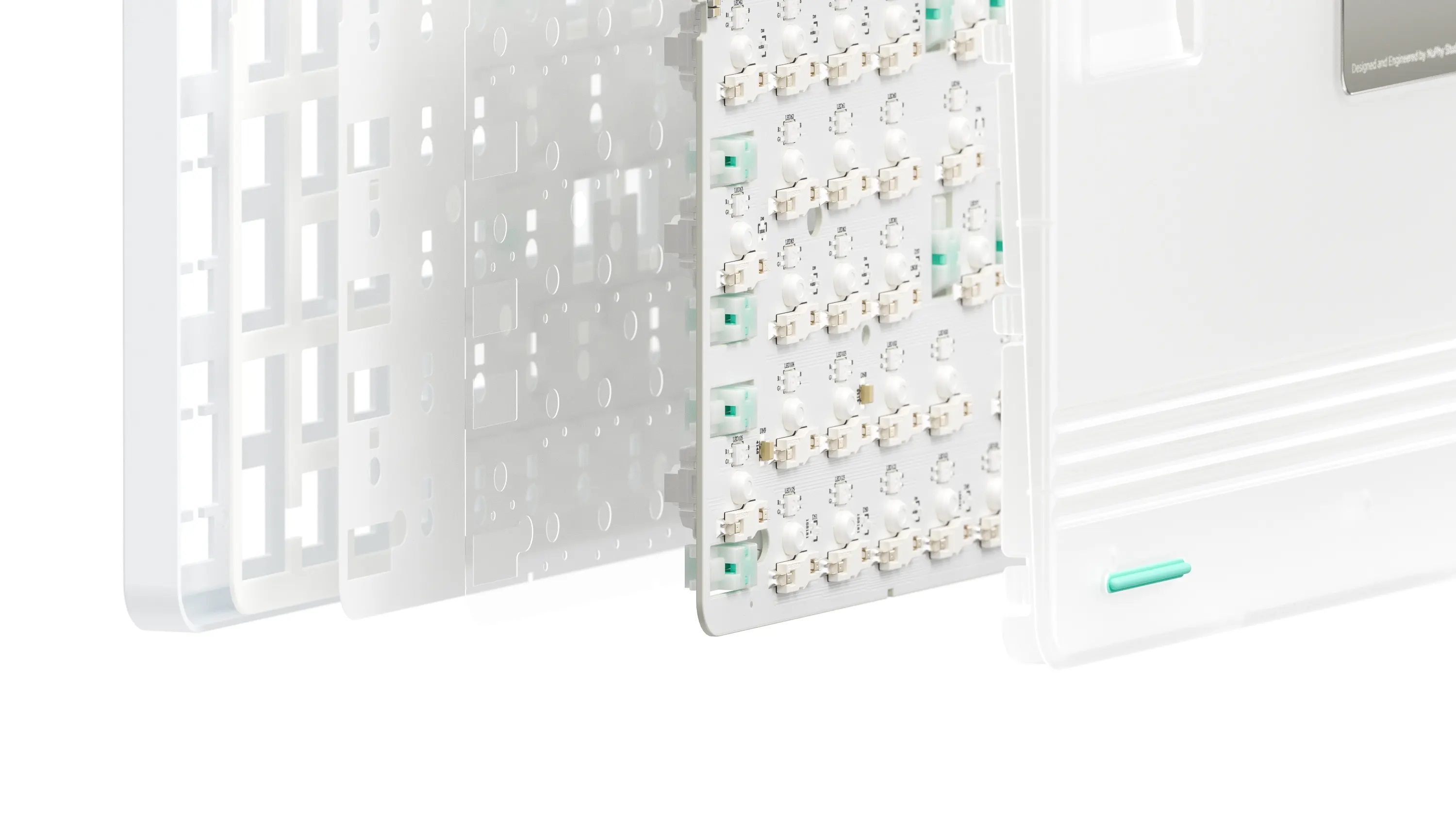 Inside Out. From the PCB to the battery, the internal components are colored to match your keyboard’s color theme, which together with the now wavy, ‘Ionic’ bottom furrows give off a layered, nuanced vibe. To top it off the light bars glasses are plated with thin layers of metal to enhance both its consistency with the overall look and durability.