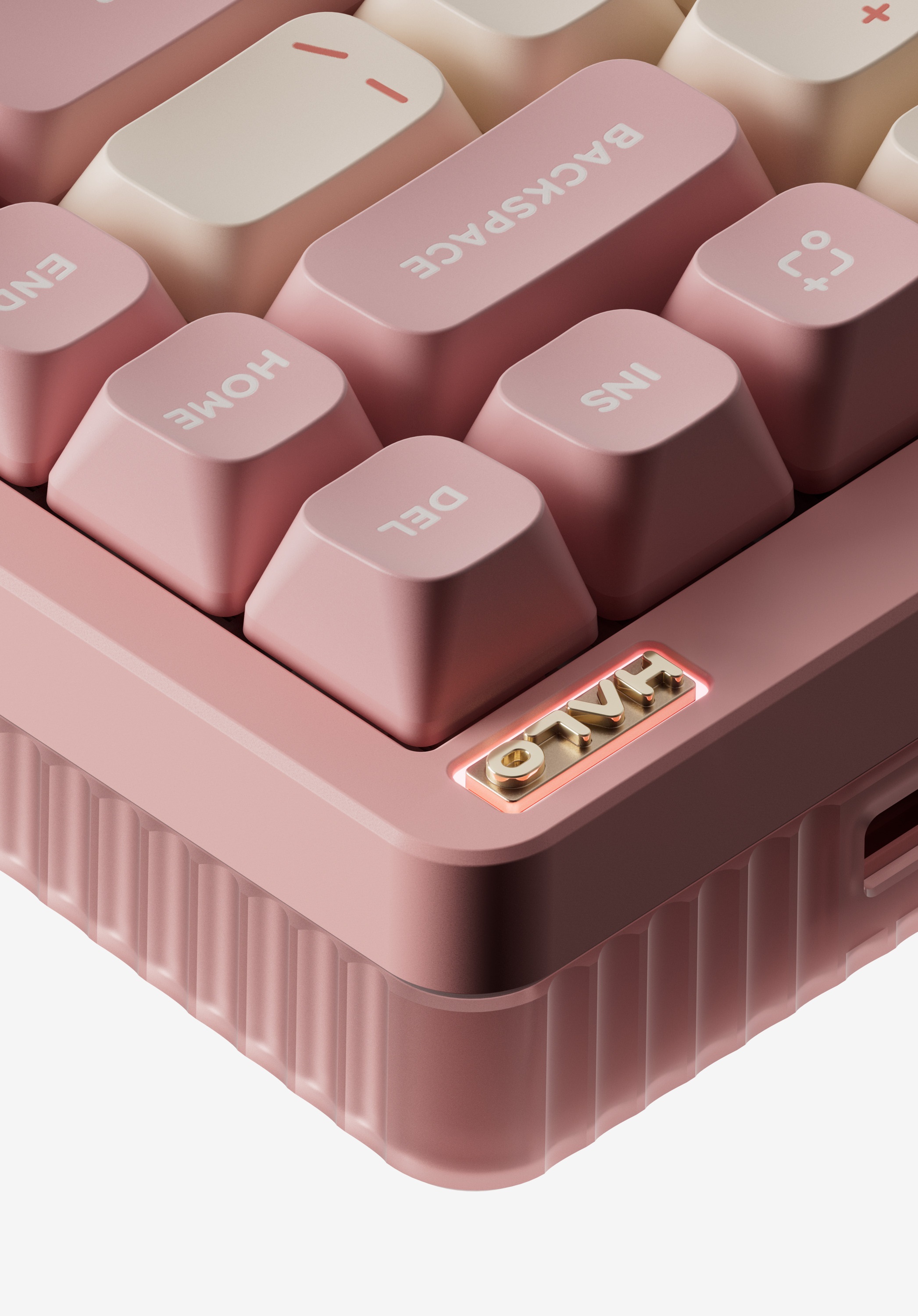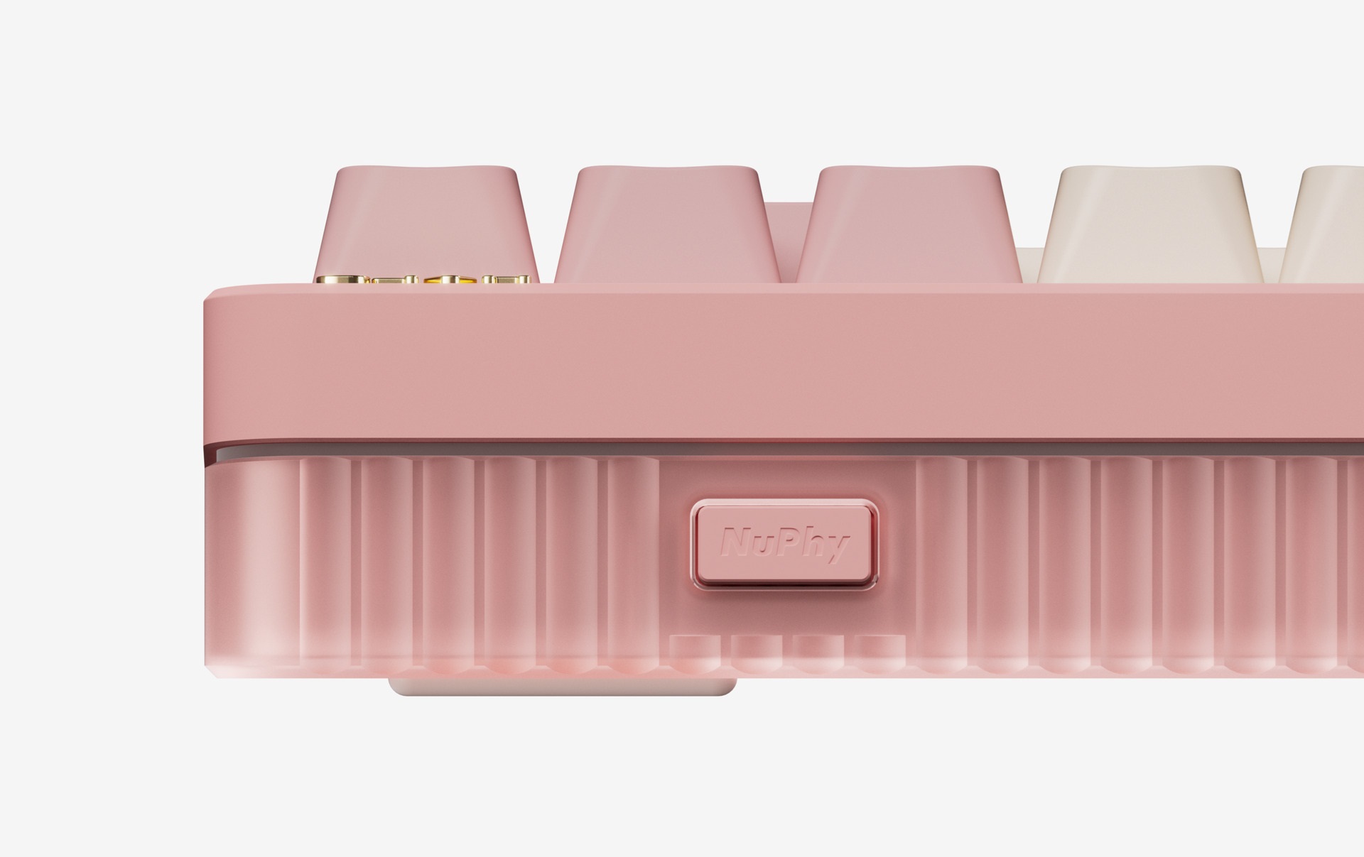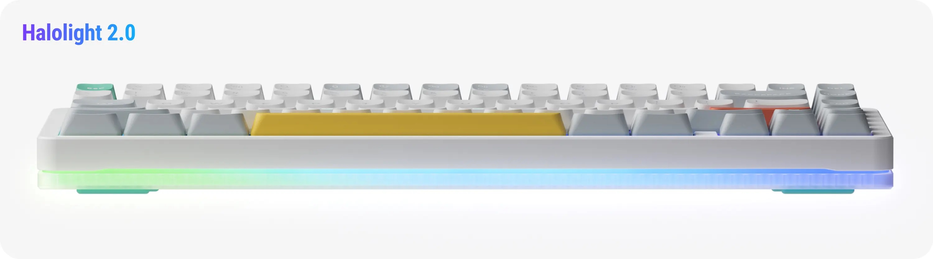 If there ever was a market segment Halo positions itself in, it is being both a device that can handle every task you throw at it, and an absolute gorgeous looker. Its wavy side columns, solid unibody aluminum frame, and its unabashed light maximalism, all serve to enhance this role. In the design of the V2 we have only doubled down on the investment: the completely redesigned semi-transparent bottom case extends the layer-ness of the Ionic side columns into the third dimension, while the Gem-style nameplate LED brings a fun twist to Halo’s impressive lineup of functional lights. When the lights go on, the bottom case ‘merges’ into the Halo light bands to create the most amazing light effects ever seen on a NuPhy keyboard.