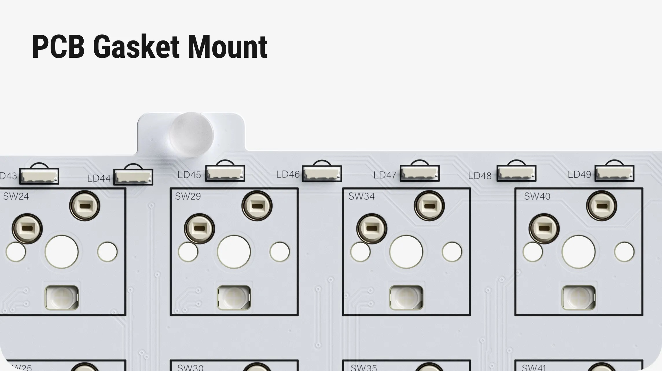 PCB Gasket Mount. A deradicalization from Gem's plate gasket mount, Halo75 v2's PCB gasket mount delivers a more balanced feel and sound.