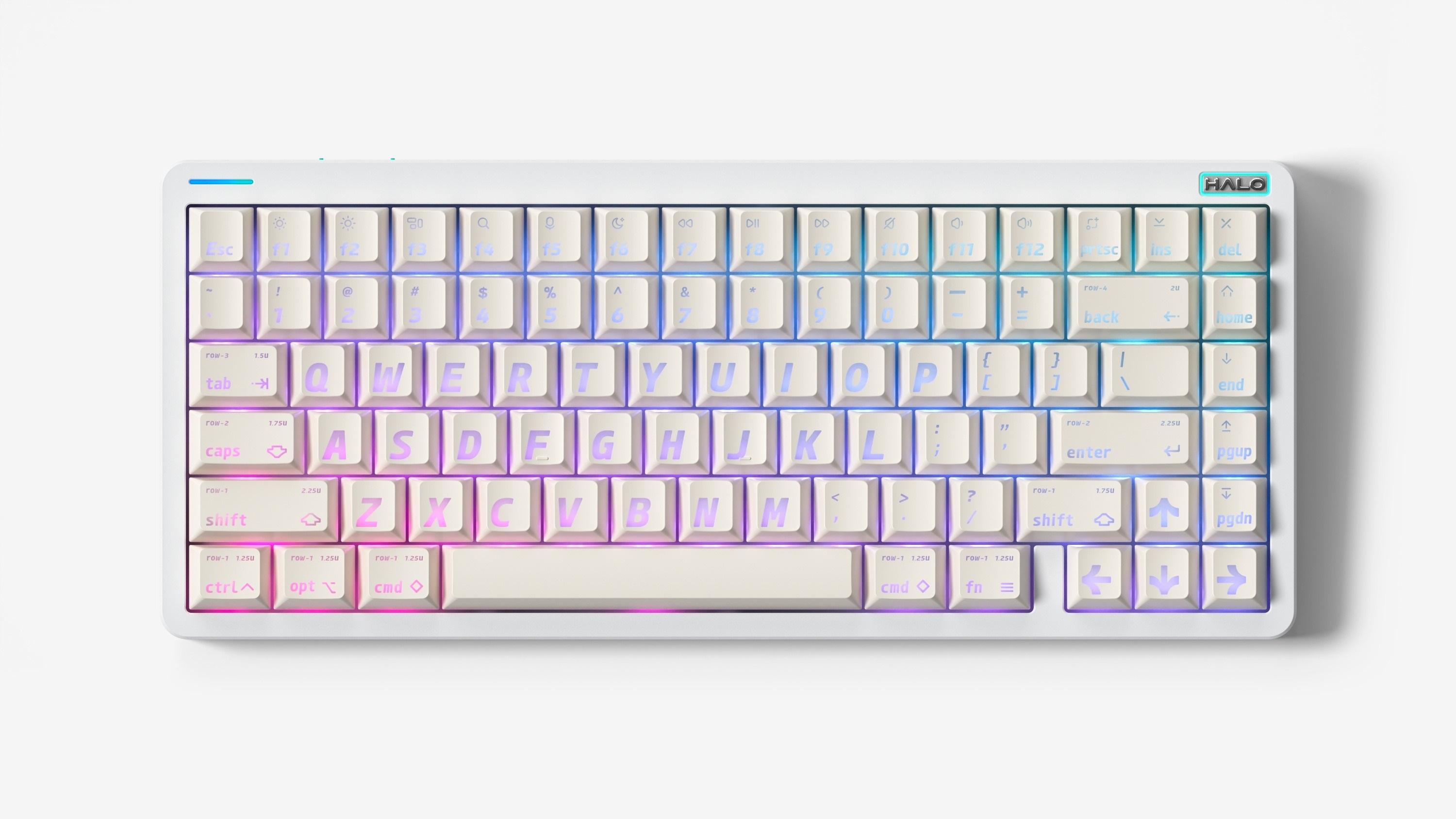 A brighter Halo. Besides the bottom case, the much more powerful LEDs of the Halo75 V2 is the other hero behind the spectacular light display available on it. With 8 different kinds of lights of different illumination styles and placements, Halo75 V2 is well placed to meet the most particular, demanding working and aesthetic needs.