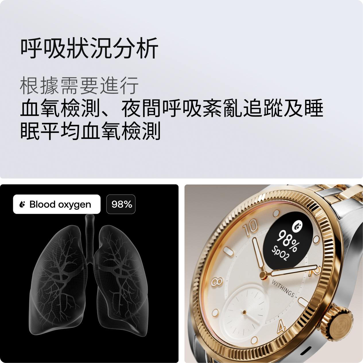 - 根據需要進行血氧檢測、夜間呼吸紊亂追蹤及睡眠自動血氧檢測。