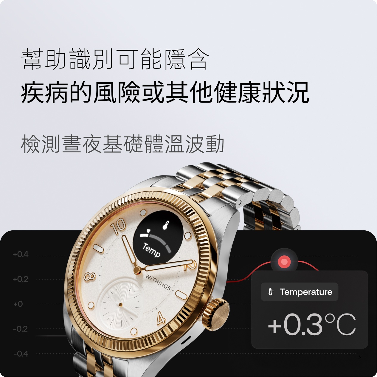 檢測晝夜基礎體溫波動(體溫波動可能隱含疾病的風險或其他健康狀況),以及提高您根據鍛煉期間的體溫變化區間管理身體狀況及恢復的能力。
