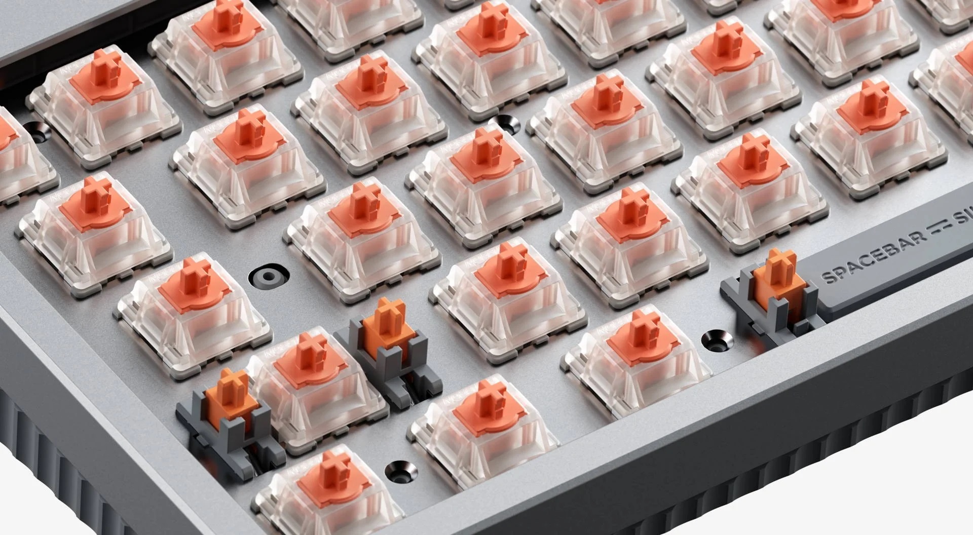 Sound engineering on sound foundations. It is just two porons with one aluminum plate sandwiched, plus one silicone anechoic sheet. The magnetic switches handle your inputs at a lightning pace, and so does every other component in Halo65 HE's signal pathway.