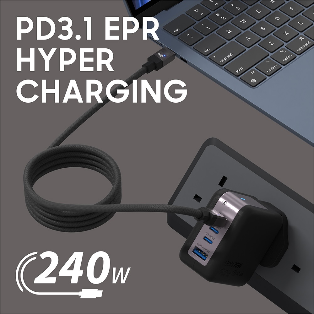 - 支援最大 240W 超極速充電, 雙層尼龍編織 選用頂級線材