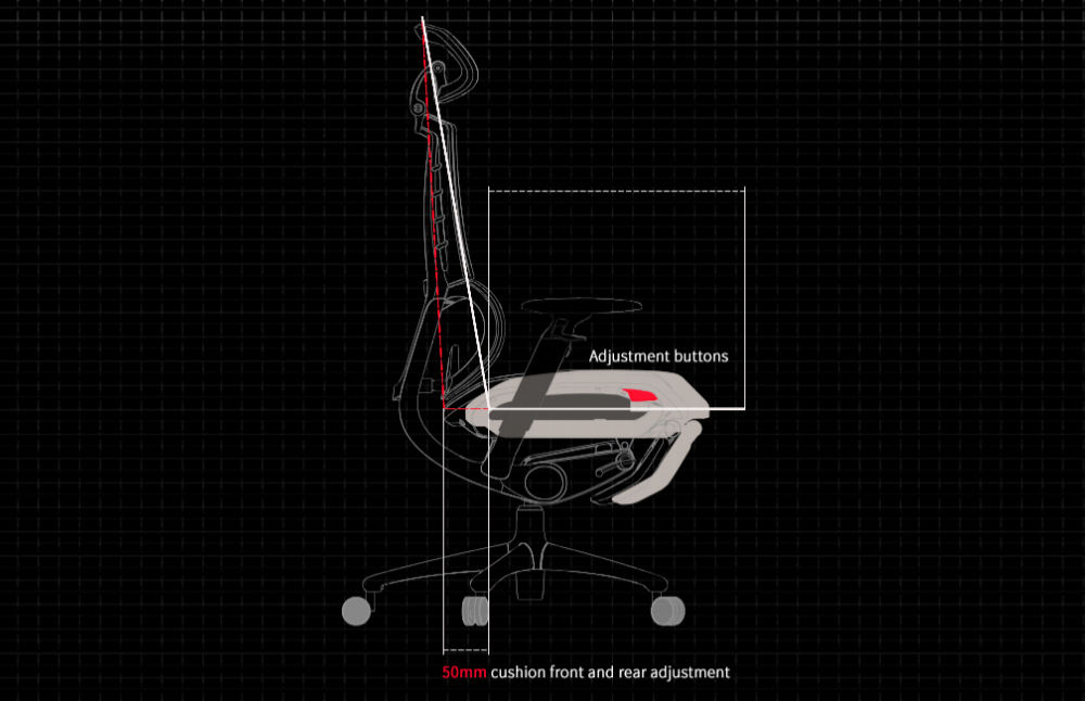 根據你的坐姿偏好配合你的需要,50mm黃金坐姿調節,打造全方位舒適體驗。