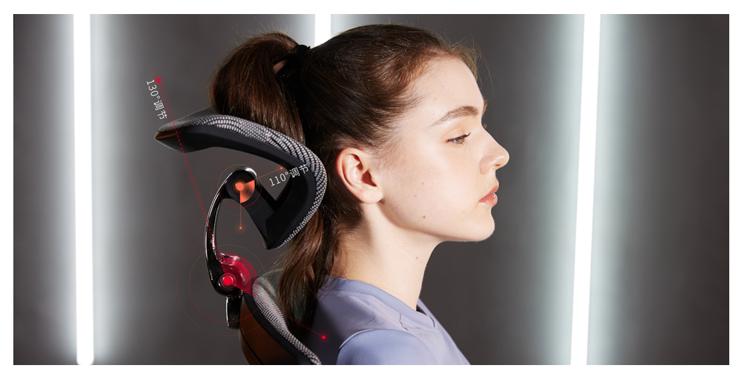 採用雙軸疊加,頭枕高度可調16cm,240°角度翻轉,最佳設計。