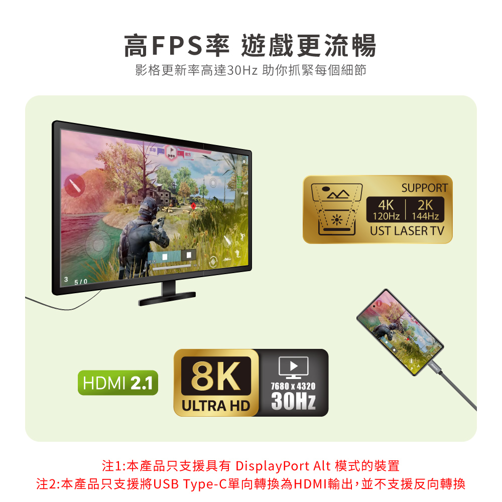 - 支援8K@60Hz, 4K@240Hz 向下兼容4k@144Hz…
