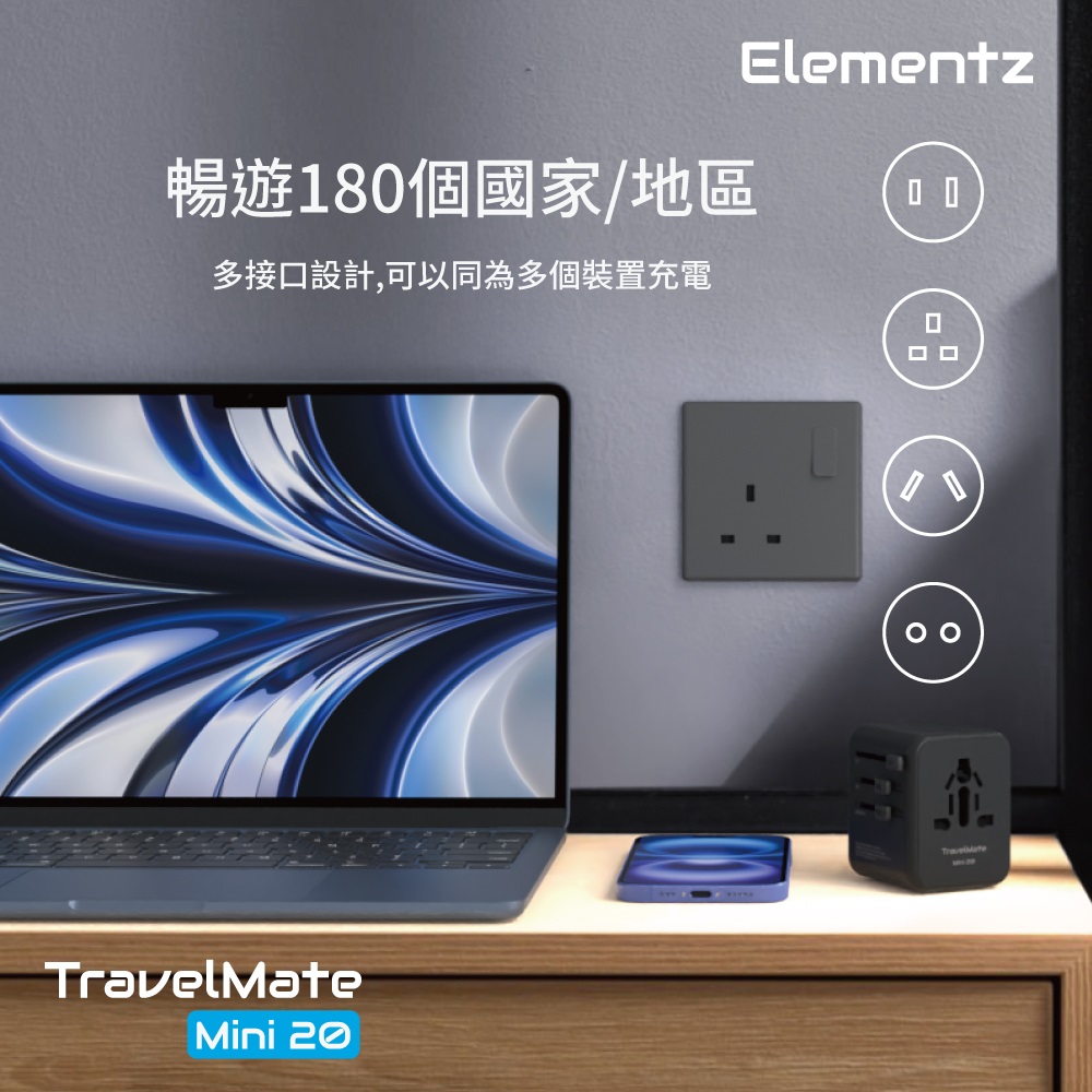 - 內置 JP/US、AU、EU、UK 插座, 可在180 (多個國家/地區使用)。