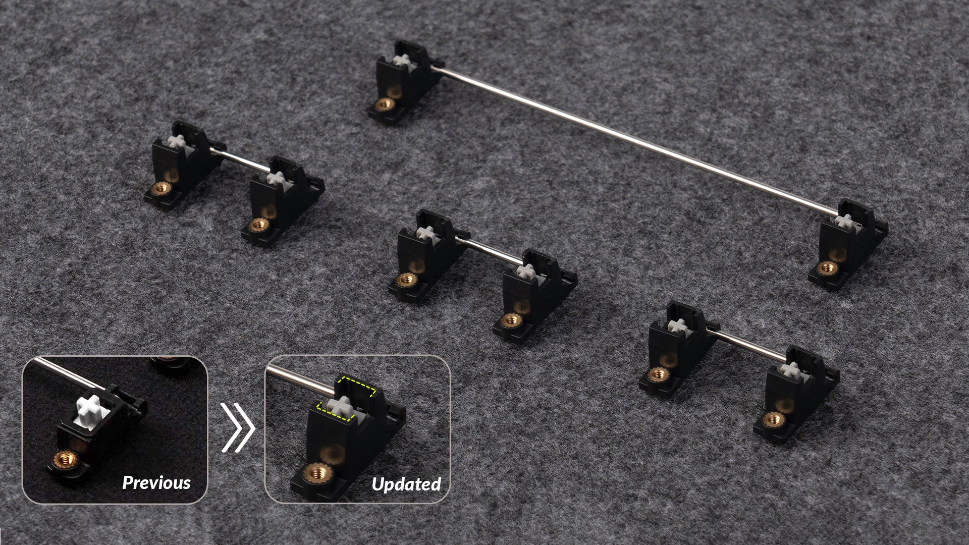Newly Enhanced Stabilizers for Ultimate PrecisionOur upgraded stabilizers now feature reinforced sidewalls around the stem, providing extra protection and significantly improving stability. These "walls" create a stronger connection between the switches and keycaps, ensuring smoother, more reliable typing on big keys like the spacebar, shift, enter, and delete. |