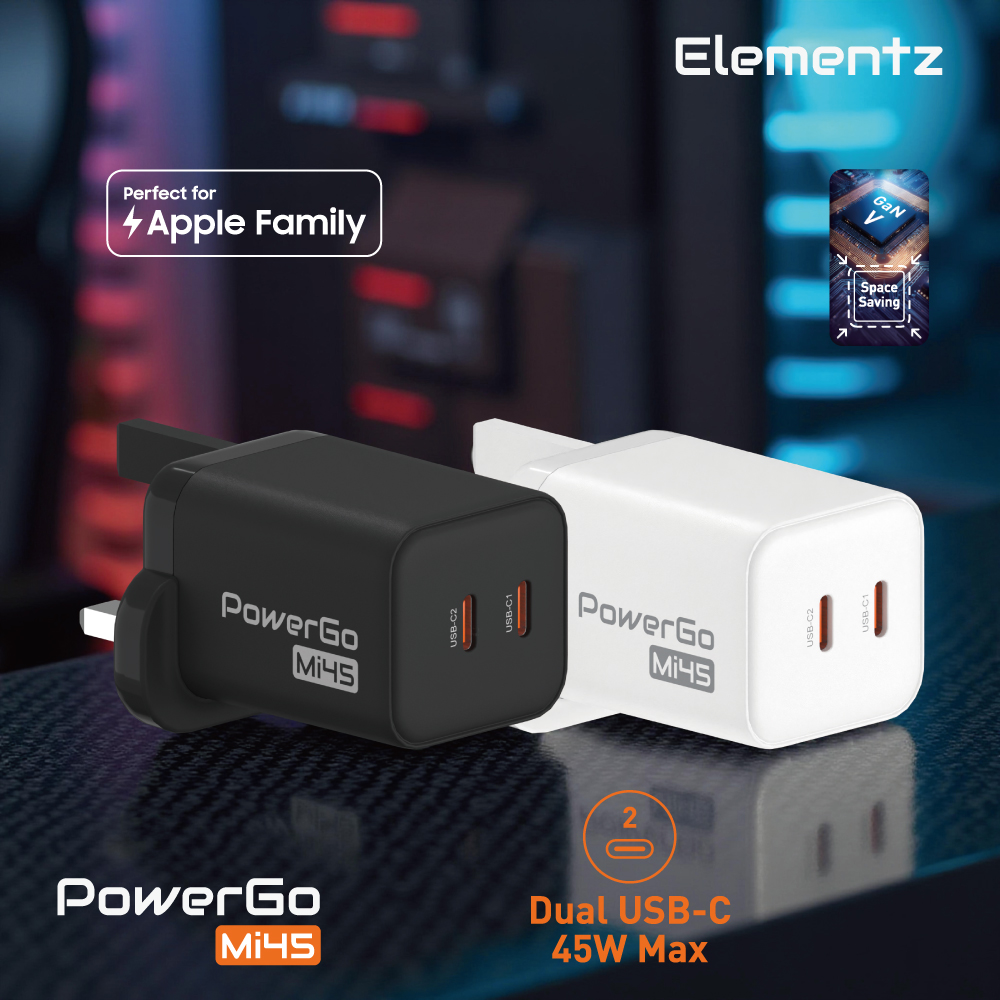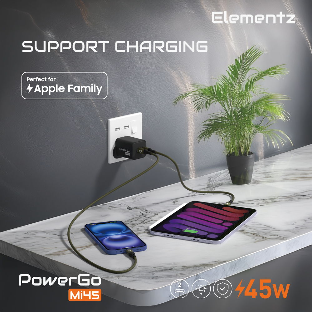 - 45W 快速充電器 ,採用GaN技術,比傳統充電器有更高的功率