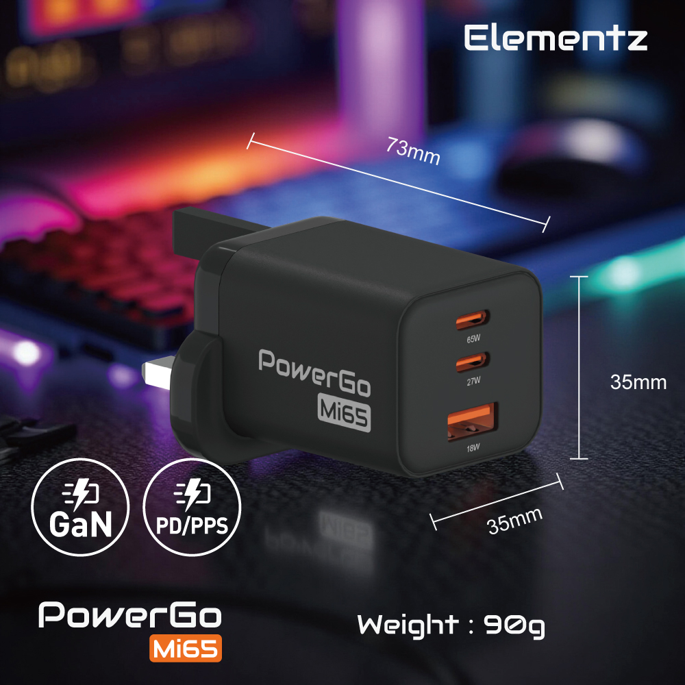- 65W 快速充電器 ,採用GaN技術,比傳統充電器有更高的功率