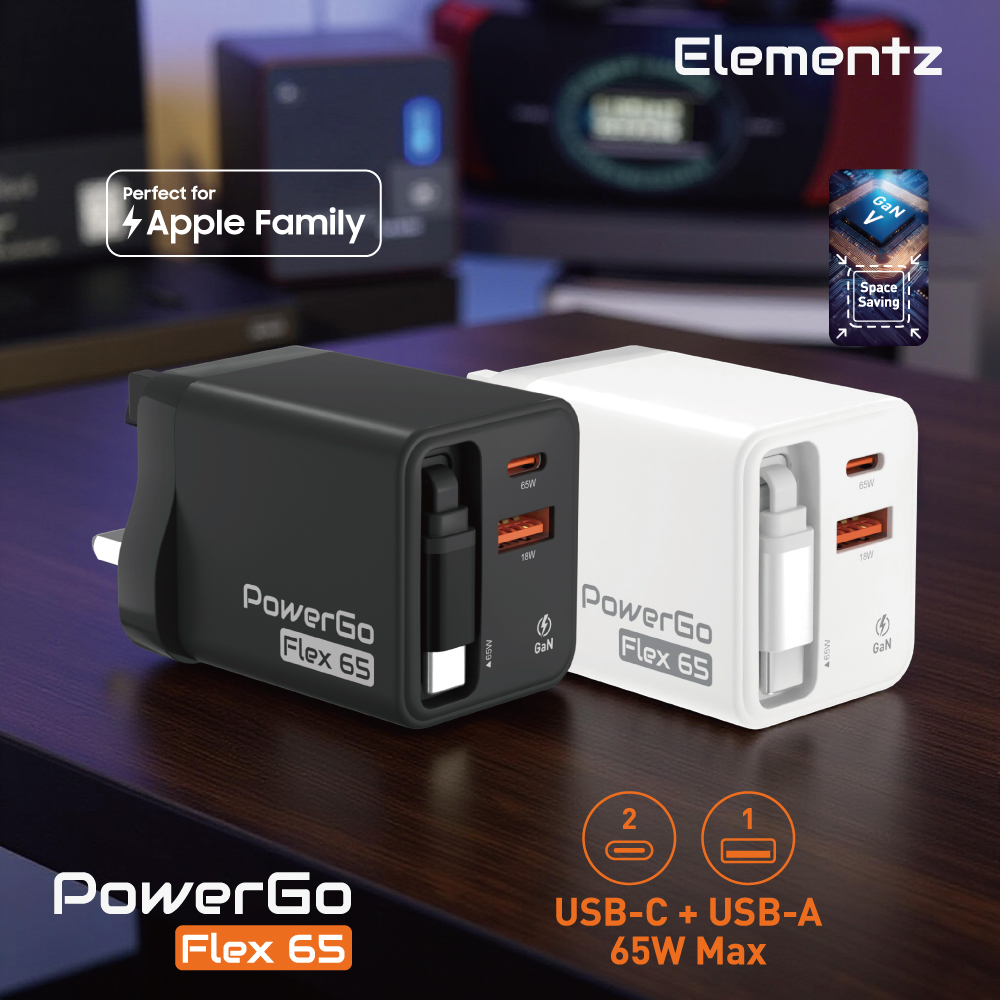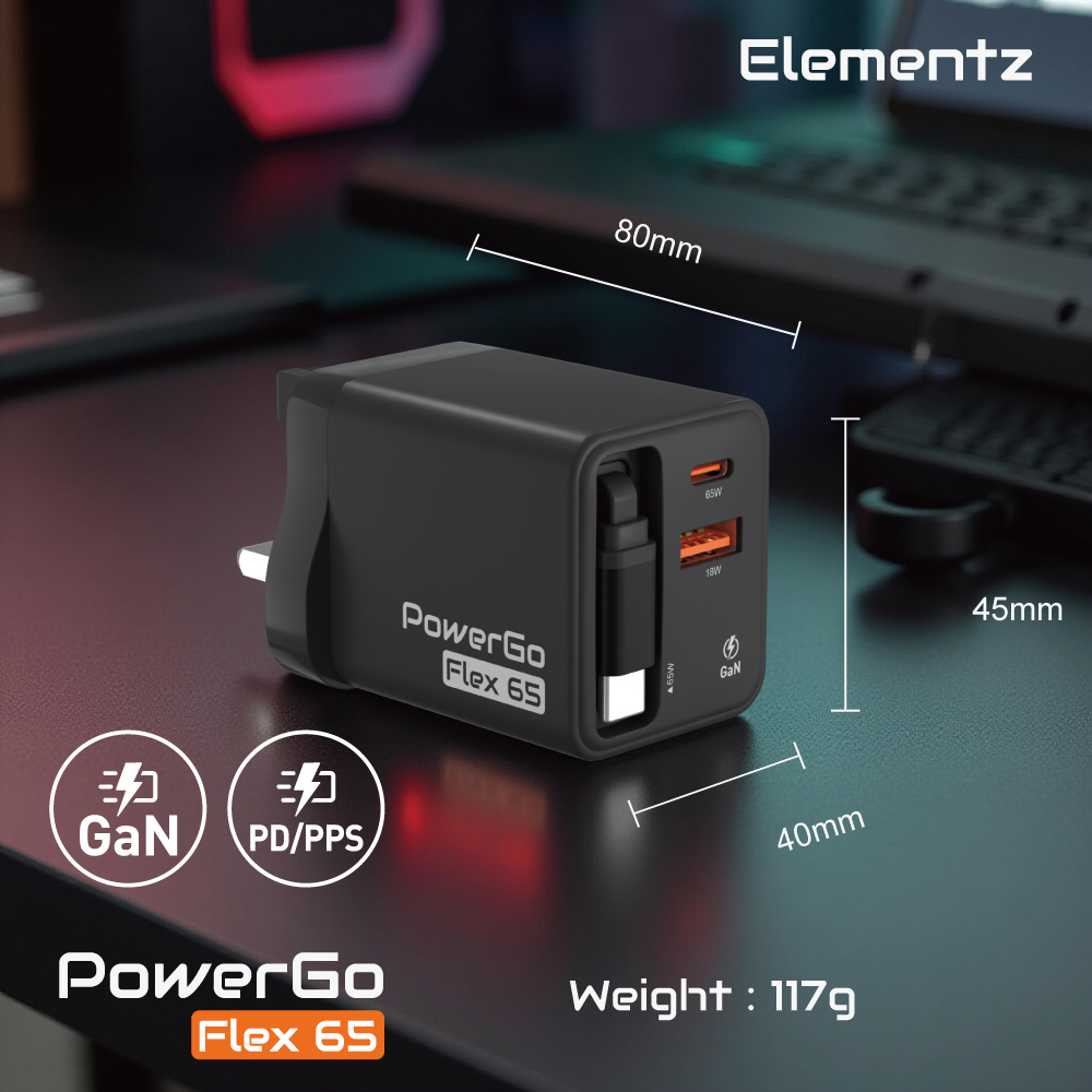 - 65W 帶線快速充電器 ,採用GaN技術,比傳統充電器有更高的功率