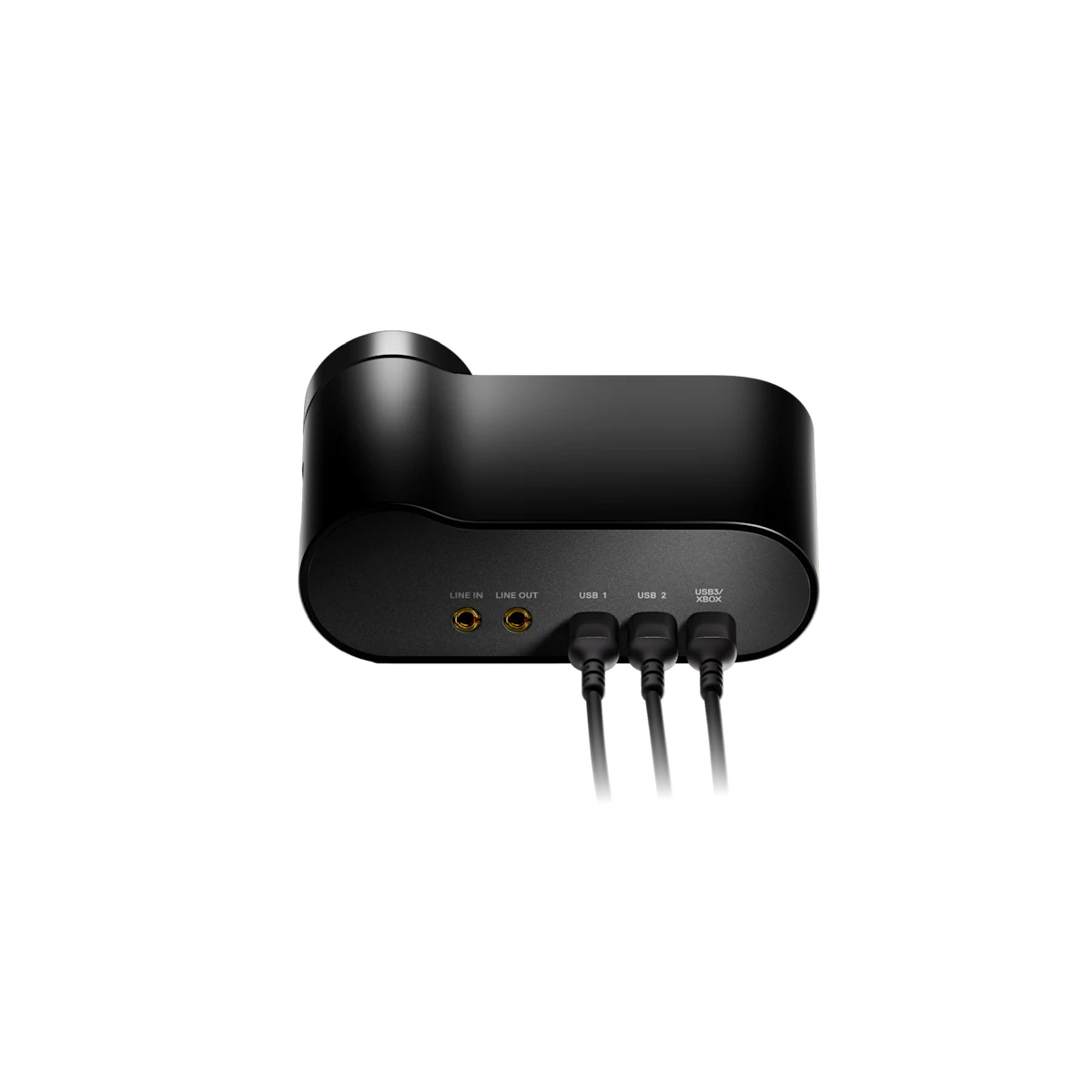 控制項:音量/ChatMix 旋鈕、來源混音、電源/配對/快速切換按鈕、靜音按鈕、藍牙媒體控制、多功能滾輪(可遠端全面控制 GameHub)