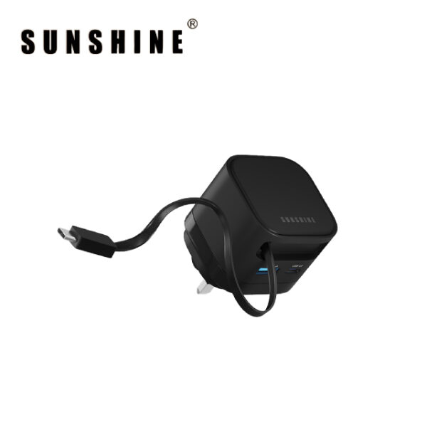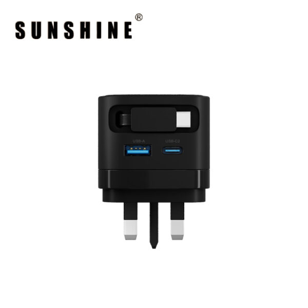 - 巧小設計,內置可以伸縮的USB-C快充線 及 1個 USB-C & 1個 USB-A