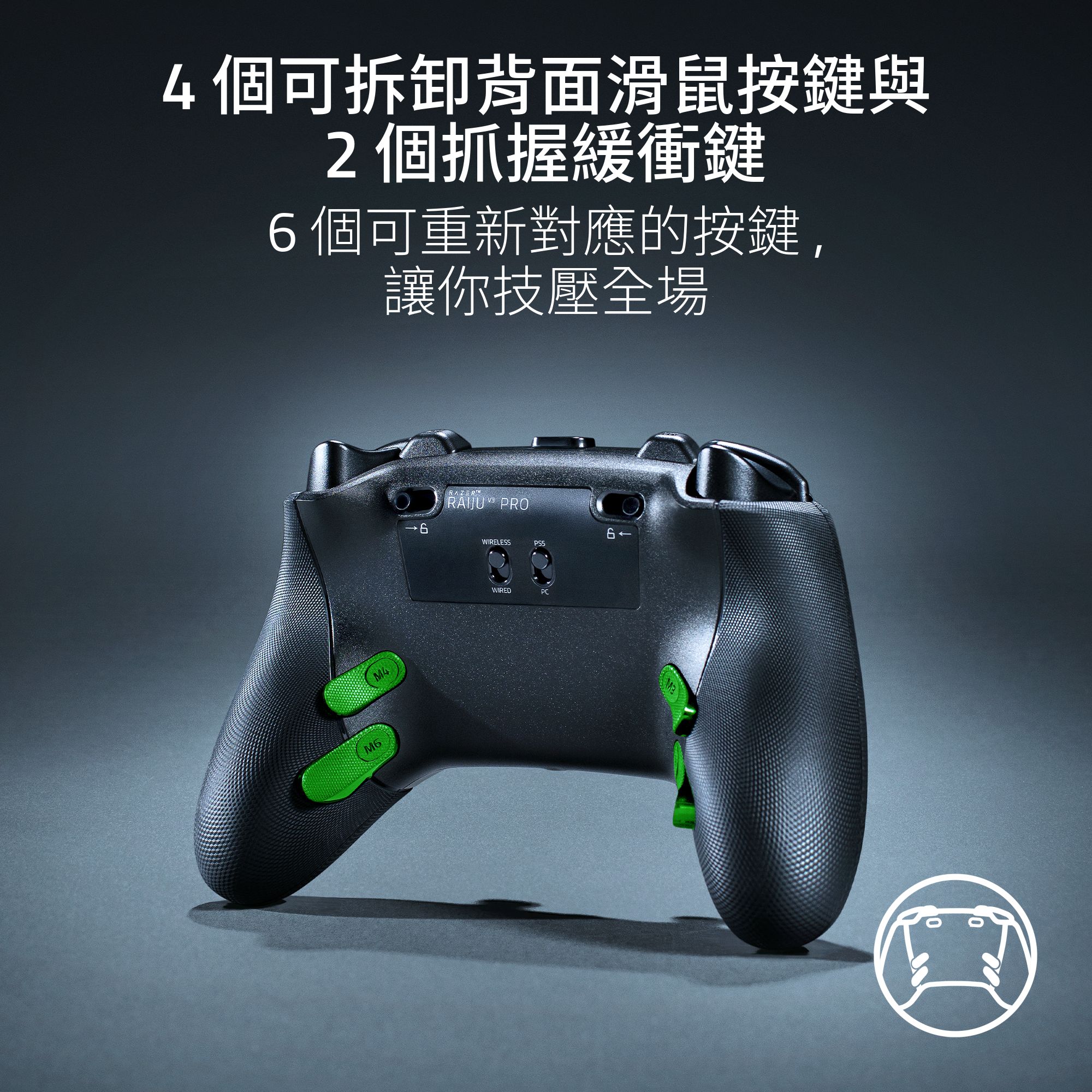 - ● 4 個可拆卸滑鼠點擊背鍵與 2 個爪握式側翼