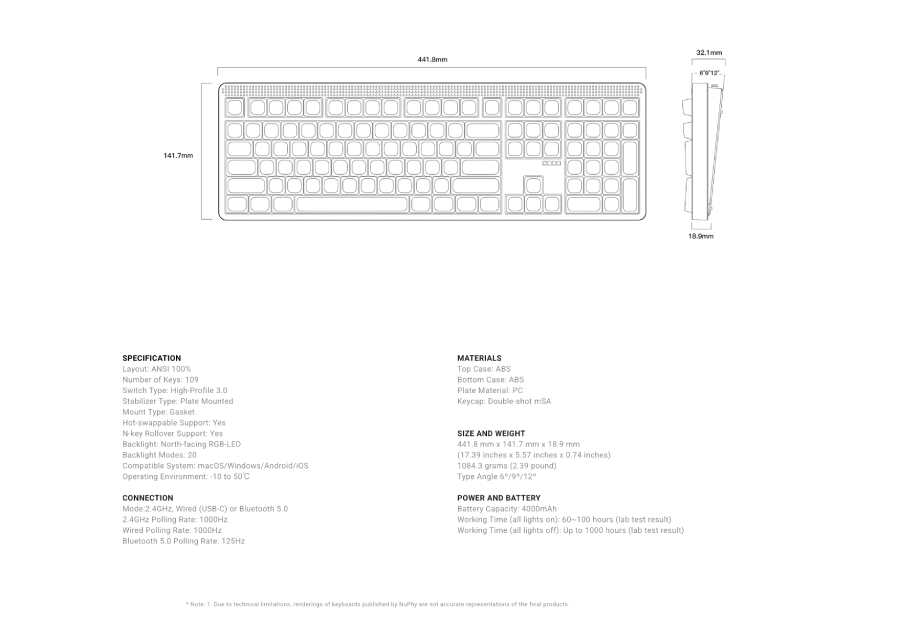 - 三模連接:2.4G、藍牙及有線 USB-C