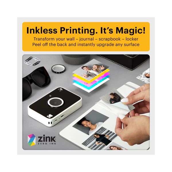 - 零墨水技術 – 不需墨水、碳粉、墨盒或底片。ZINK 技術可製作鮮豔、全彩、背面可黏貼的 2x3 吋照片,並具備防水、防撕裂、防污損的特性。