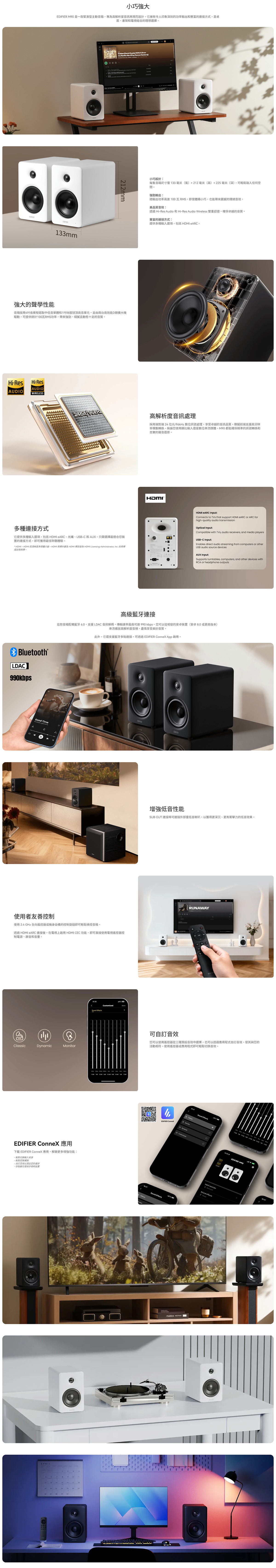 - 可與 EDIFIER ConneX 行動應用程式搭配使用,以實現更多功能