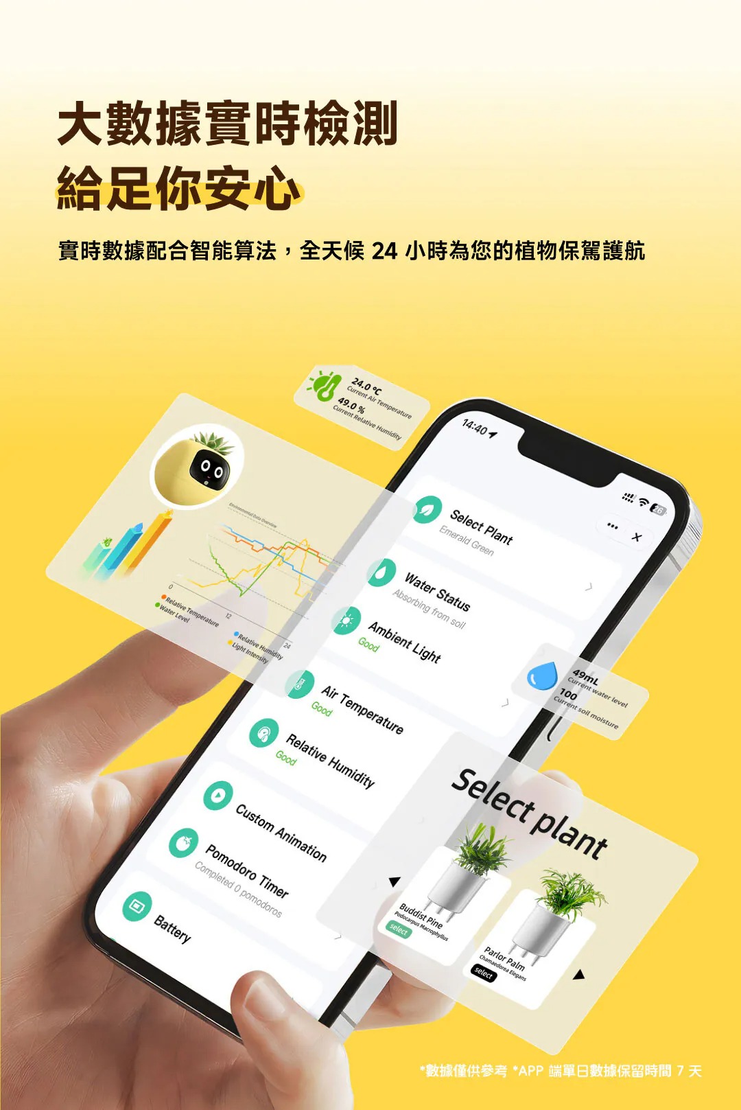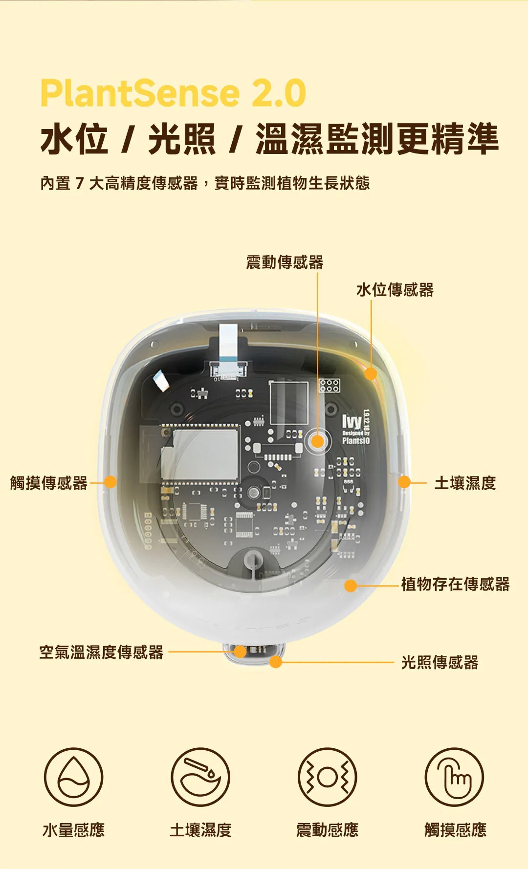 • 智能感應系統:內建7個高精度傳感器,實時監測植物生長狀態