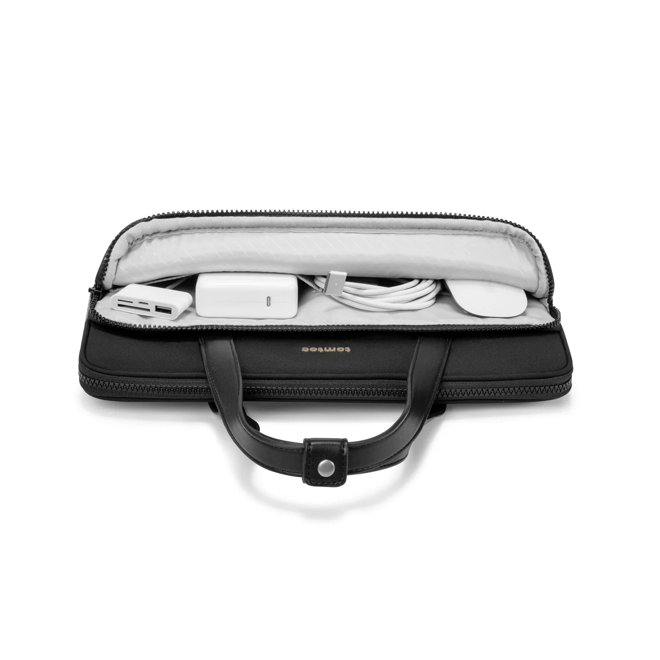 持久防護:選用耐用防潑水布料以及tomtoc 原創 [CornerArmor] 設計,邊緣具有高彈性,可保護您的 13 至 14 吋 MacBook 免受汽車安全氣囊等事故的影響。
