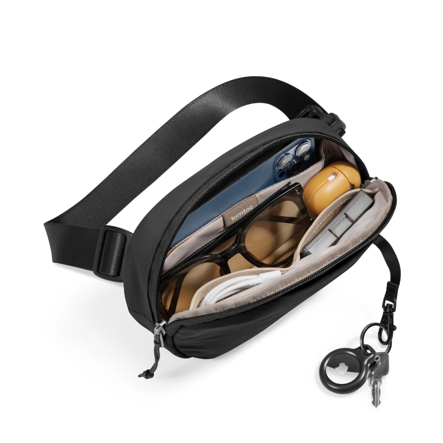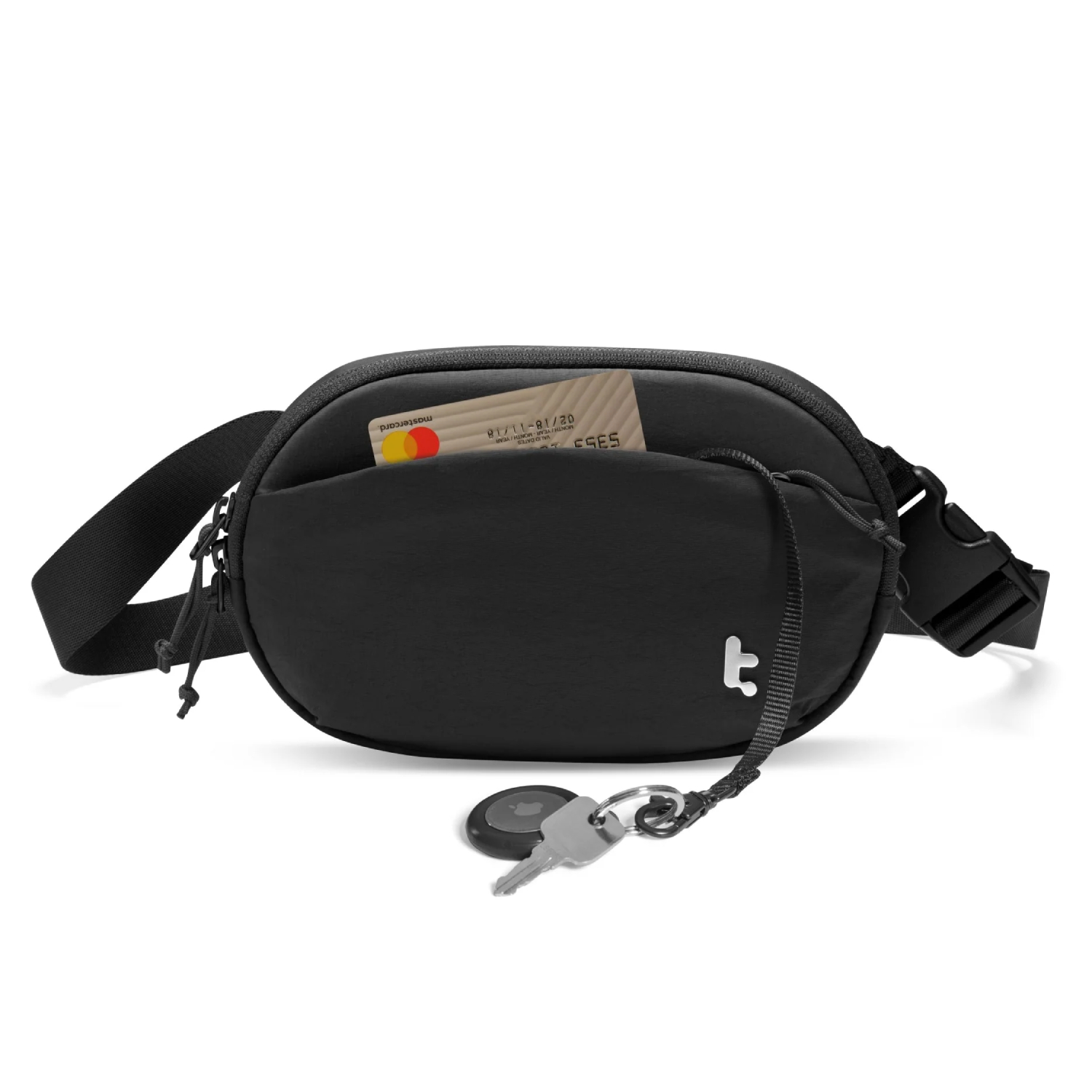 - 前置口袋配備鑰匙繩可掛AirTag或鑰匙,隱藏式後袋妥善保護貴重物品