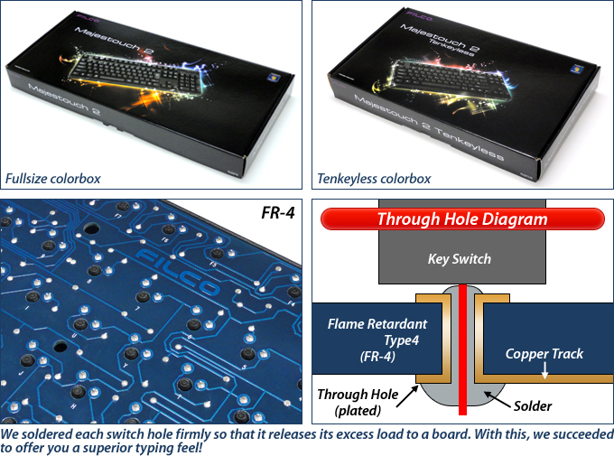 全新使用FR4 雙面板技術,全面提升鍵盤的信賴性,耐久性及暢快的打字感 ! 不謹如此,更使用貫孔技術,每顆switch透過貫孔被窂窂的固定住,而減少因為打字所產生的振動,使打字更順暢,同時回彈力也更加佳,也大大減少了鍵盤的故障率。除此之外,軟體部份也提升到最高傳輸速率,非常適合專業級電玩玩家。