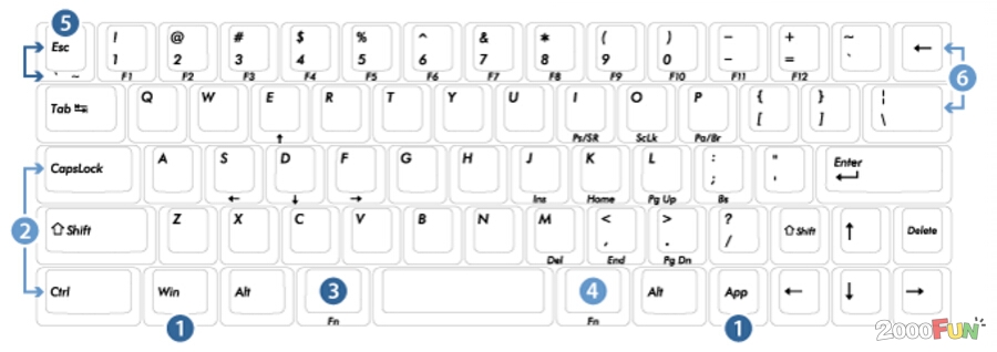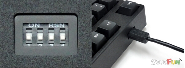 - 指撥開關開啟特殊功能如按鍵換位或禁用WinKey