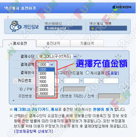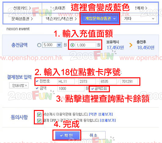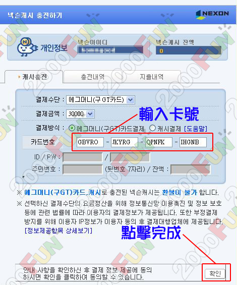 Nexon點卡充值教學: (第一種充值方法) 適合純數字序號