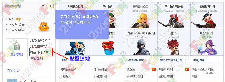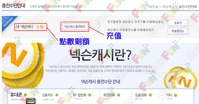 nexon點卡充值在nexon 帳號後,再把點數分配在其他遊戲!