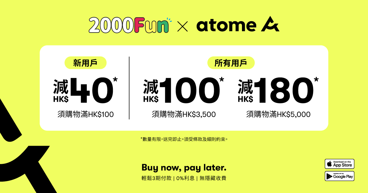 - 每位ATOME用戶只能享受乙次新用戶優惠。