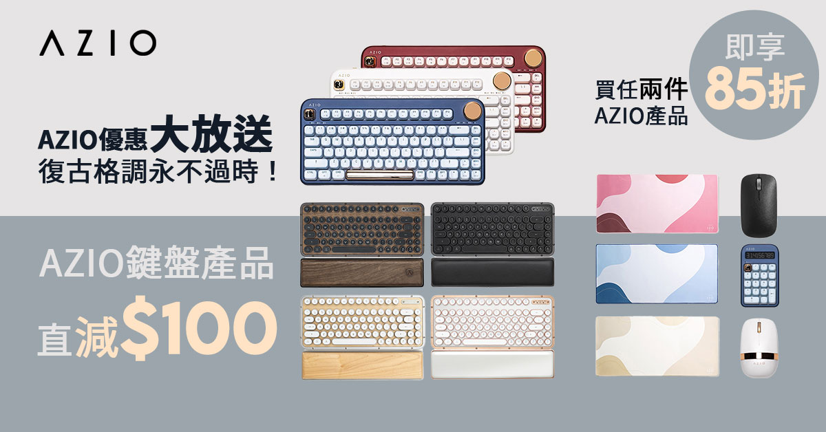 購買任何乙款 AZIO鍵盤(numpad除外) 直接減$100;