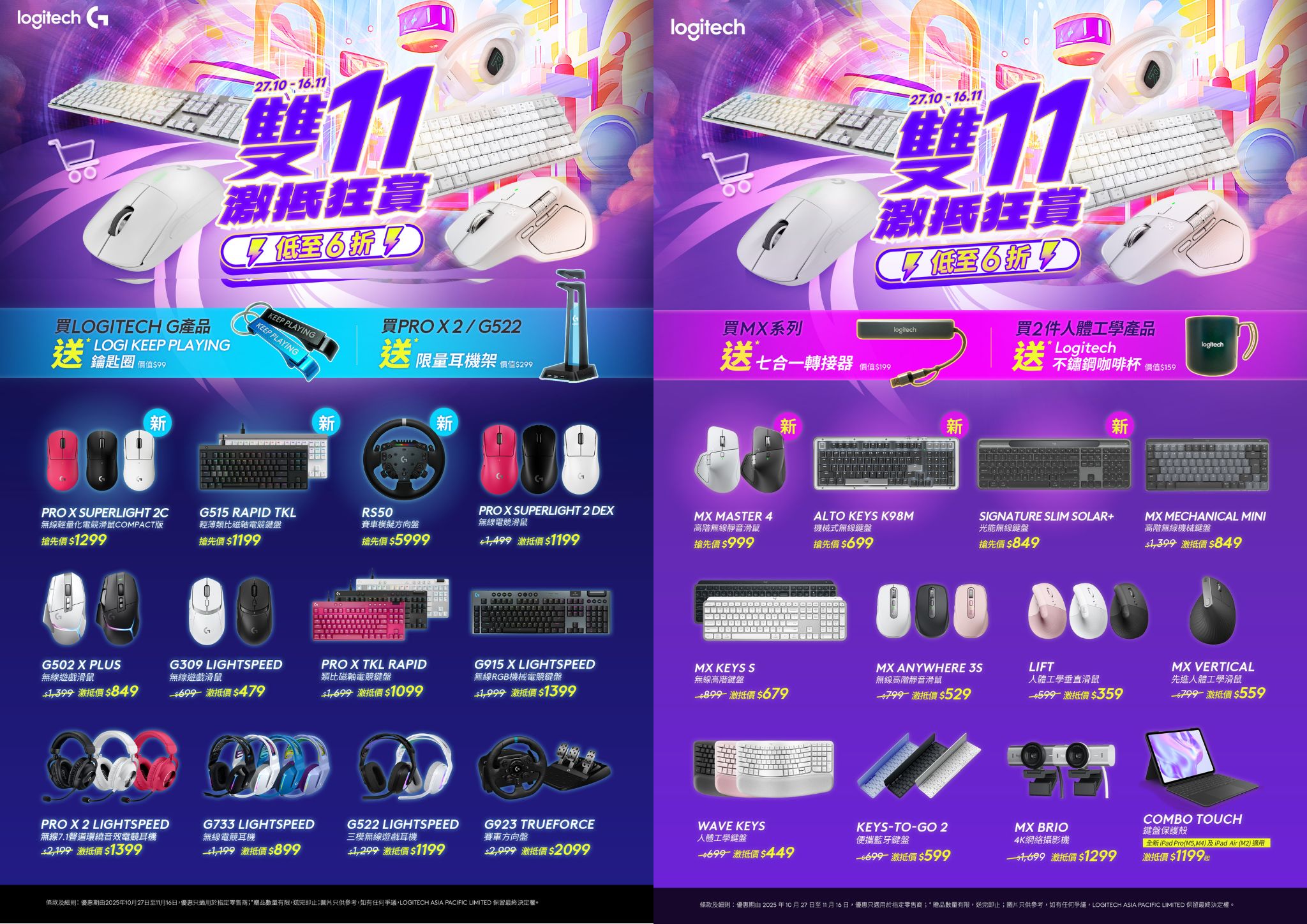 Logitech 雙11激抵狂賞,低至6折起