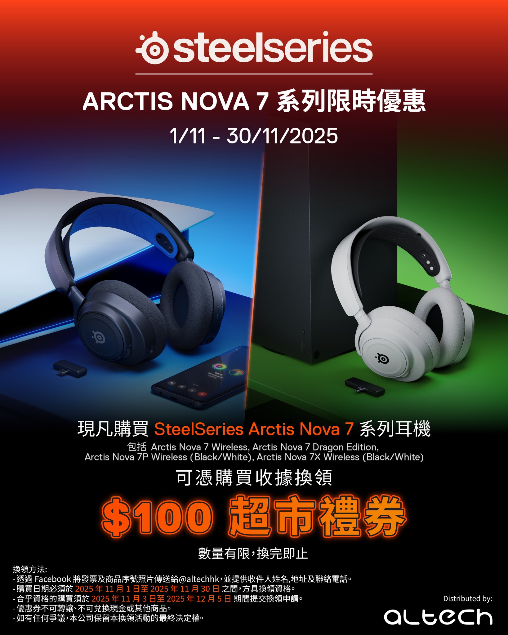 SteelSeries Arctis Nova 7 系列限時優惠,送超市禮券