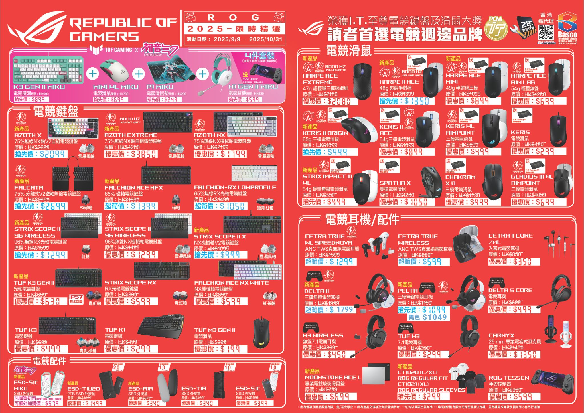 ROG Gear/ 顯示器 /路由器及Powered by ASUS電腦砌機 10月優惠